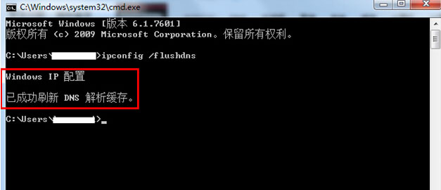 3.输入完毕后按【回车键】确认,系统将自动执行清除DNS缓存操作;